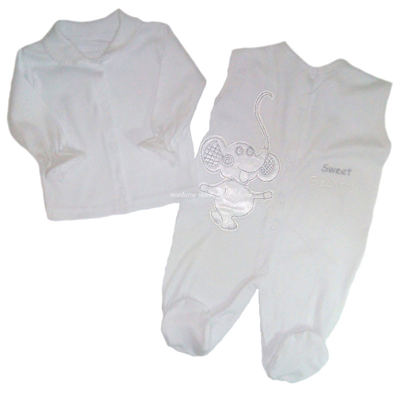 "МоёДитё" комплект полукомбинезон + кофточка интерлок белый М493 "Каталея"