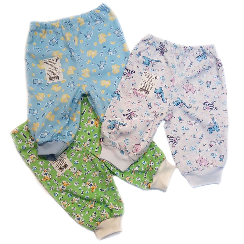 Детские штанишки по доступной цене, изготовлены полностью из 100% хлопка. Для того чтобы Три медведя брючки 051К держались на ребёнке, внутрь сверху вшита обычная резинка, а снизу предусмотрены манжетики. Обратите внимание, покупка производится сразу комплектом из 5 штук, разного оформления и цветовой палитры, но если необходимо увеличить количество товаров – нажмите на «+» ниже стоимости. Цвет штанишек при этом нейтральный, он не бросается в крайности и не диктует, что мальчику, а что девочке (поверх нанесено набивное изображение). В каждой партии расцветки отличаются.