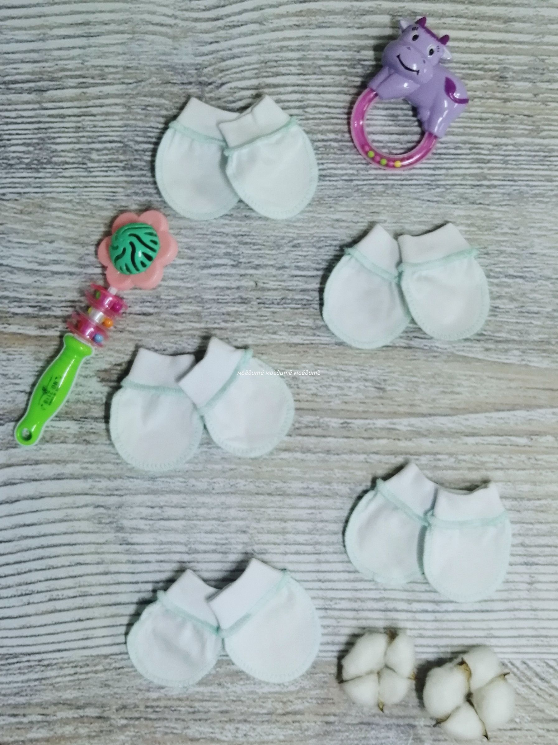 "МоёДитё" царапки кулирка белые + мята ЦК018 "Гардения" в Батайске